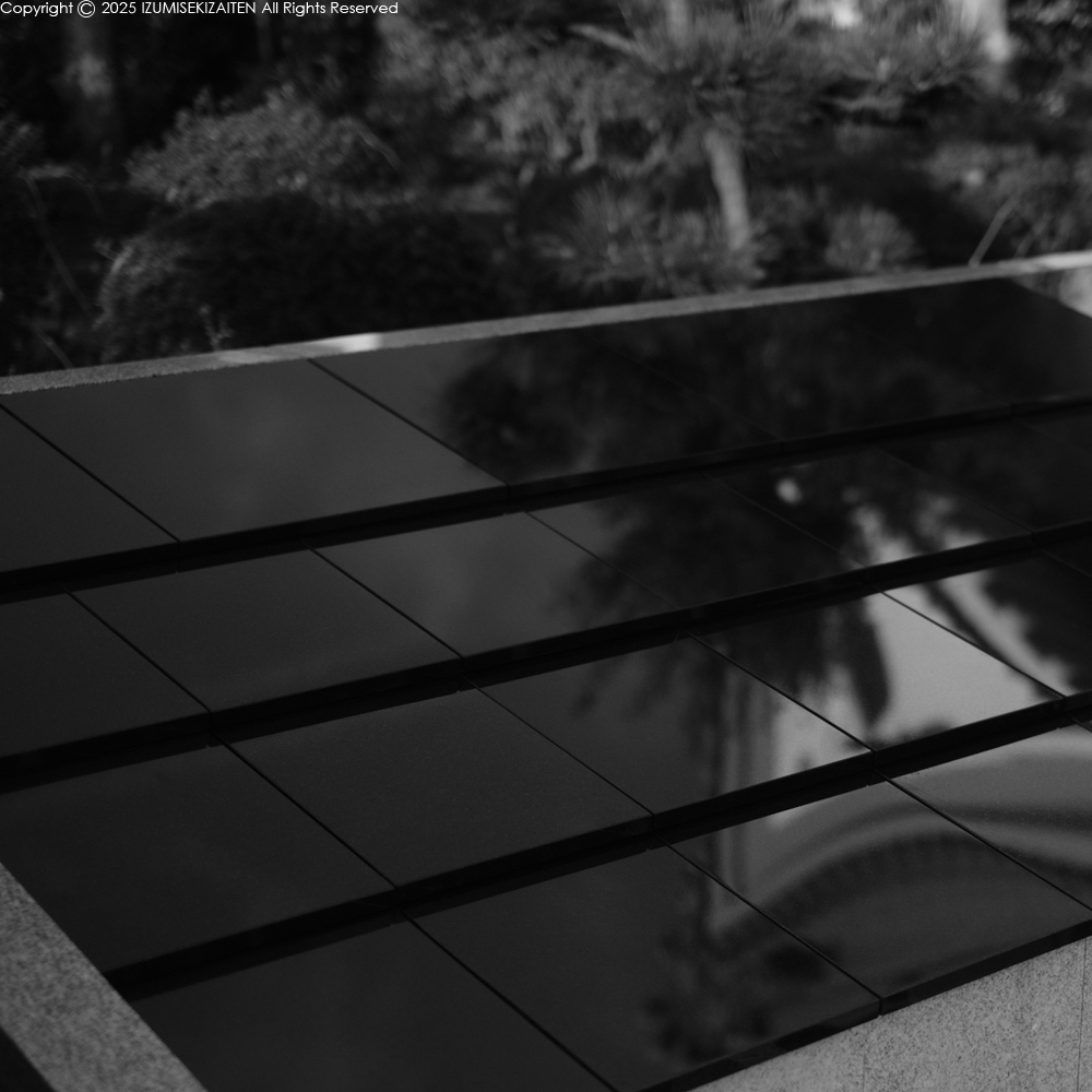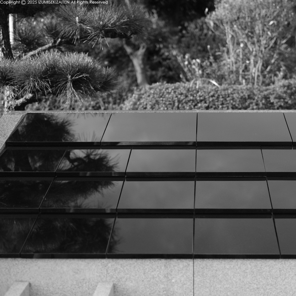 精度が大切な理由は目地。縦横の目地が揃っていないと悲惨な結果になります。そして天板の平滑さも必要。2mm以上の誤差がある場合は据え直している状況。空が映り込むので平滑でないと歪みが凄いことに。この納まりだとコピーされる恐れはありません。4月には完成する予定ですので、ご興味のある方は和泉石材店までお問い合わせください。