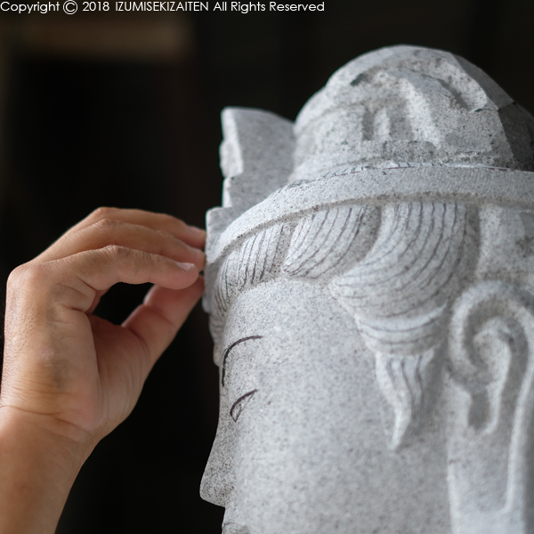 お盆前最後の仕事が仏像の中間チェックでした。前回原石だった花沢石が、仏像に姿を変えていました。実はこの仏像、金属作家さんとのコラボがありまして、本来彫るはずの頭部と胸部の装飾が彫られていません。これからどんな姿になっていくのか、実に楽しみなお仕事です。仏像には世相が反映すると言われています。この仏像が後世に何を伝えるか。製作する側が意図する内容以外に、世相は別段意図しなくても反映しています。時間と共にそういった部分が浮かび上がるのが仏像の魅力。石屋の仕事の中でも、最も長く残る仕事となるものです。私たちも全力で取り組んでいます。