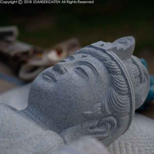以前よりブログで経過報告をしていました、東海市の泉柳寺さんの仏像がほぼ完成しました。花沢石を岡崎の仏師が一人で彫り上げた聖観音菩薩像で、高さは5尺となります。据え付け場所の背後には裕建築計画さんが設計した納骨堂があります。それを光背に見立てた仏像で、装飾は千葉工作所さんが担当します。今回はモックアップを仏像に取り付け、最終イメージの確認です。果たして最終完成時はどうなるのでしょうか。早く取り付けた姿を見てみたいです。