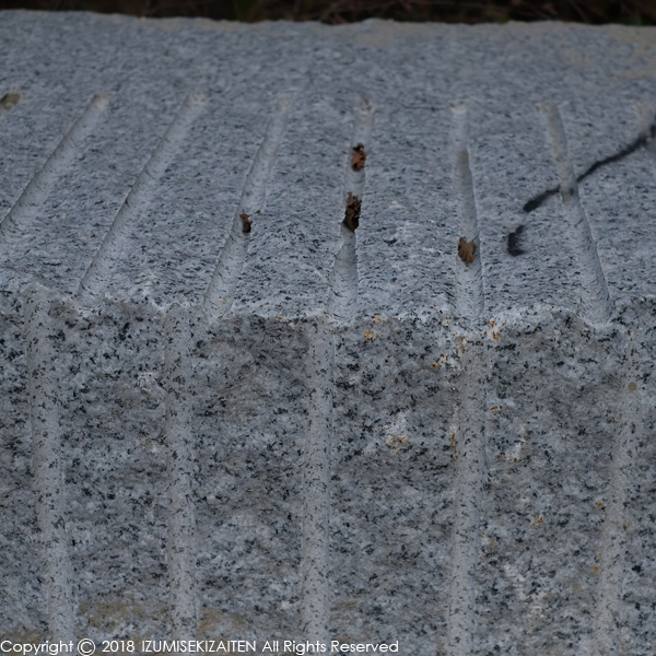 足助荒目という石ですが、足助町ではありません。2005年の町村合併で足助町から豊田市へと変更になりました。石の名前はそのまま足助荒目となります。この石の特徴はとにかく石目が個性的なのです。他に似た石がほぼ無い。強いて挙げれば中国に1つだけ似た石がありますが、石目を見れば瞬時に区別が出来るレベル。他に無いというのが強みになっているのかどうか分かりませんが、今でも根強い人気がありまして、特にお墓の外柵材には最適の性質になっています。