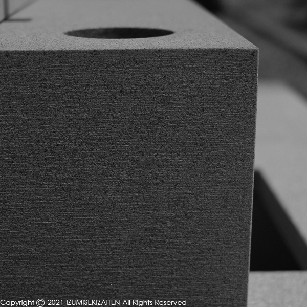 石表面の小叩きは極めて繊細。小叩きをするまでの下地作りに3工程費やし、4度目で完成に至ります。素晴らしい質感なのですが、信じられない位に控えめなのです。何なら普通のお墓より大人しい。でも良く見るともの凄い手仕事がされています。結果として経年変化が明確に異なるわけで、そこをどう見るかが問われる仕上方法。石が柔らかな表情を見せるのが不思議なんですが、実際に触っても何だか柔らかな印象を受けます。表面の1mmにも満たない部分で起こる作用は、石が風化する物語の舞台なのです。