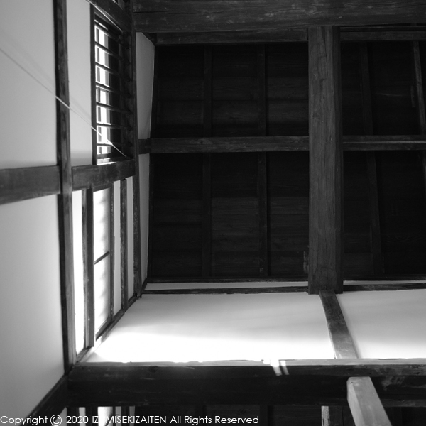 三階の客間で正座をして眺めた景色がこちら。もちろん堀川沿いとは景色が違うでしょうが、昔の日本の建物は畳に座って眺める事を前提に造られているのです。これが椅子に座ってみていたのでは全く違った景色になるでしょう。名古屋にも沢山古い料亭がありますが、そのほとんどが机に椅子に変えられています。高齢化社会においてそういった対応はもはや不可欠なのでしょうが、便利な椅子座の裏で失われた景色がある事を忘れてはいけないと思うのです。そんな事で、明治村に行ったら是非東松家住宅を探検してみてください。