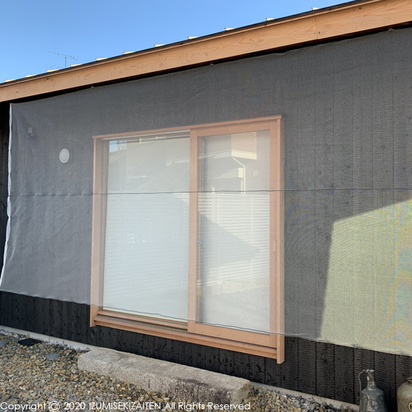 取り急ぎ用意したのは取引先のお寺さんでいただいた玉石。これにアンカーを打って結束します。多分暴風時はこれだけでは飛ばされますので、次なるステップは玉石を地面の中に埋設する事です。上の砕石を少しめくるとアンカーが見えてくる状態で、普段は目に入りません。これが引き抜かれるような風だとクルマが横転とかそういうレベルです。この暴風ネットの良い点は、飛来物に対して建具のみならず、壁面の広い範囲を守れるところです。そして軽量簡単安価。一番の手間は見えないようにアンカーを用意する事。実際には役に立つような災害が起こらない方が良いのですが・・・。我が家はコレで台風シーズンを乗り切ります。