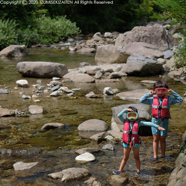 kawaasobi20083.jpg川遊び本番。気合い十分な姉妹。昨年は骨折騒ぎと大雨で全く笑えない状況でしたが、今年は違います。昨年の水位が異常だった事は今年の川を見て初めて理解しました。水難事故注意です。