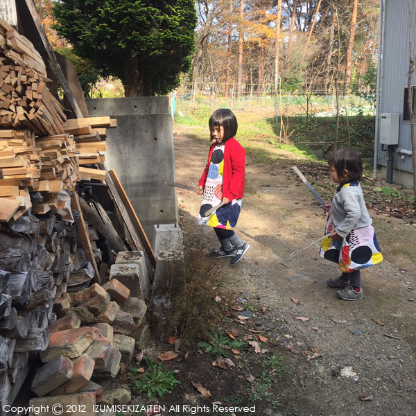 その作家さんはこれから行く美術館の超有名椅子を制作された方で、その椅子はみんなが良く知る建築家のデザインのものです。(後に登場しますのでお楽しみに)私たち親は、工法や作品などのお話しに興味津々、こどもたちはそのすばらしい環境にワクワク。3秒後にはそこにある木や葉っぱを遊びに変えていました。ワサワサでフワフワの葉っぱのシャワーでキャッキャと大盛り上がり。ストーブに触れる度に、この素晴らしい景色とこのこどもたちの笑い声を思い出すのだろうなと思いました。