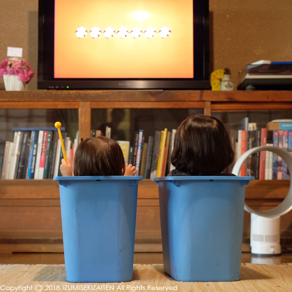 我が家の姉妹はベッタリ仲良しというスタイルを取らないみたいです。でもいつもどこか意識しあっていて、次女は長女のマネばかりするのが常ですが、次女が楽しそうなことをしていると、長女もやり出すこともしばしば。私が用事を終えて2人元へ戻ると、このようなことに。並んで各々のスペースで、観ているのはパンダコパンダという正しすぎる絵面です。エアコンの部屋で快適、妙に落ち着くのか長い時間このままで観ていました。良いタイミングで夫も帰宅。爆笑で写真を撮っていました。この時期にしかない光景をたくさん残して行けたらなあと思います。