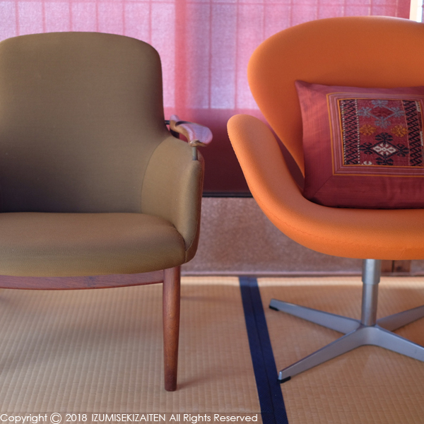 出番を待つ椅子達。家の二階で出番を待っています。右はヤコブセンのスワンチェアですが、以前長女がこの椅子から転落し、骨折をしてから退場処分となっています。そしてフィン・ユールの椅子も長女にアームをかじられています。次々にダメージを受けてきた椅子達ですが、もう半年ほどで自邸が完成しましたら、羽根を伸ばせる時が来ます。椅子はそれぞれにふさわしい天井高や床材、そして空間があるとおもいます。私たちは古民家で北欧家具のある意味ミスマッチを楽しんでいたのです。座ると言っても床に座るのと椅子に座るのは景色が全く違います。古民家はあくまで床に座るのが一番。奇しくも古民家で椅子座をしてから床に座る事の大切さを知る事になりました。日本の家の天井高も何もかもが床座とリンクする。頭で分かっていても経験しないと真意は分からないものです。新しい住まいでこの椅子達がどう空間に溶け込んでいくのか本当に楽しみです。