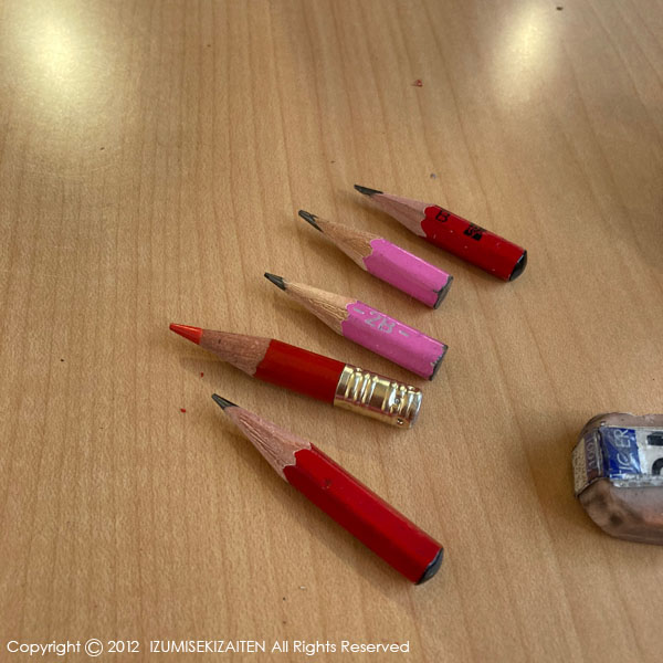 自分の所持品とのおわかれにめっぽう弱い長女。2年生になっておろした鉛筆が気がつけばえらいことになっていました。私がこどもの頃なんて、文房具が新しくなることが嬉しくてしたかなかったのに、長女はそれよりずっと使っていた「ちびっこえんぴつちゃんたちとおわかれすることがいや」なのだそうです。彼女はお気に入りのものへの感情移入がハンパ無いのです。書きにくいでしょう?と言っても「キャップをすればまだ書けるから、けずれなくなるまで使いたい」と泣かせることを言います。まだまだ筆箱の中身はぐちゃぐちゃだけど、モノを大事に使うことは素晴らしいです。そして削れなくなったちびっこえんぴつたちはまた捨てられなくて、小さな箱に溜まっていくのでした。