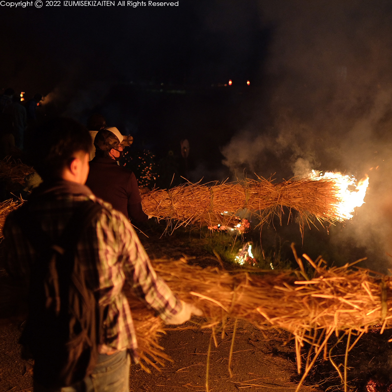 炎をあげて皆が麦藁を燃やし練り歩く。土手は真っ赤に染まり、煙で目も真っ赤。家族全員燻されて完璧な虫供養が出来ました。行事を支える地元の方々に感謝感謝です。次の時代に伝え、命の大切さ、自然との関わり方を教えられたらと思うのです。