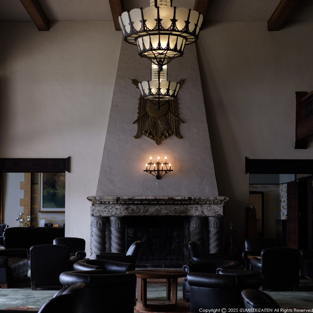 ニュース 旅行 暮らし 川奈ホテル DATE 2025.04.01 大荒れの天候でしたがちょっと遠出をしてきました。目的地は川奈ホテル。ホテルの設計者は高橋貞太郎。過去に旅した赤倉観光ホテルなんかも手掛けています。ホテルから出てくる雰囲気が、帝国ホテルや赤倉観光ホテルと同じなのです。 建物内のあらゆるデザインが素晴らしい。ホテル内にある資料展示スペースにはその答えが。繁岡ケンイチ氏が手掛けていました。同氏については2010年のブログに取りあげていて、覚えていました。川奈ホテルに勤務していたこともその時記しています。赤倉観光ホテルの思い出がよみがえる素晴らしいデザインで、何とも言えない格別な雰囲気に満ちています。 このフォントにシビれました。ゴルフのためのホテルはもの凄いセンスが良かったのです。慎重にデザインされたことがうかがえる繊細さ。田舎家の英語表記は大文字で特別なフォント。Aの文字が茅葺き屋根を思わせるのですが、どうなんでしょうか。 若沖の絵画のようなタイルの滲み。ぼんやりとした滲みの連続が生み出す柔らかさ。塗装しただけの壁とは圧倒的に違う風合いの豊かさがあります。それこそホテルのいたるところにあるのです。 器から何から何までデザインされています。そして今なお現役で使われている。新しいデザインが絶対に真似出来ない価値がそこにあります。こういうクラシックホテルの良さはそこに尽きます。 ホテル入り口には根府川石でしょうか。淡い緑と赤っぽい部分がランダムにはられています。富士山が近いエリアは安山岩を使った石張りが多いので、概ねこういった風合いになります。このムラムラ具合が良いのです。火に強い性質もあるので館内のマントルピース周辺にも使われていました。ここまでコストを掛けたホテルはもう造れないでしょう。技術的な問題もあるでしょうが、何より社会がそれを求めないのです。ペンペラペンの建物ばかり見ていると、川奈ホテルの重厚感に圧倒されます。 CAT:ニュース | 旅行 | 暮らし 一言石句 TOP prevnext
