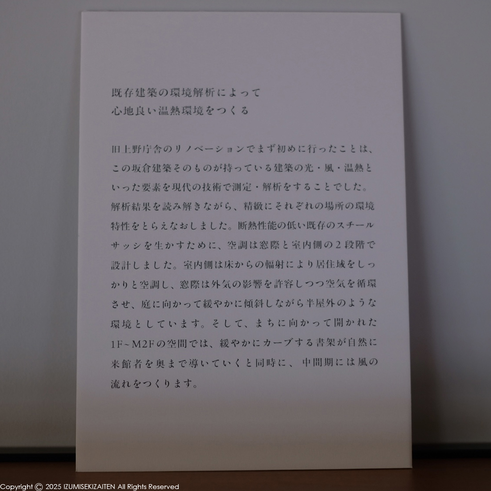 ニュース 建築 旅行 暮らし 旧伊賀市庁舎その2 DATE 2025.08.05 古い建物は何かと性能面でダメ出しされます。とにかく建具周辺や外皮性能が低いのです。耐震性〜温熱性能のうち、耐震性は命に関わるものですので、どうにもなりませんが、温熱性能は事情が違います。窓際はどちらかというと温熱性能に対して寛容な空間になっていて、室内側できっちり整えるという考え。建物内全てで完璧な性能を確保しない方向で、実に合理的だと思います。 こちらがスチールサッシです。建物全体がスチールサッシではなく、アルミ化された場所もあります。このスチールサッシを残すために温熱環境の解析をしたと言えます。 スチールサッシの何処が良いかと言いますと、見付け寸法の小ささです。鉄とアルミではヤング率(弾性変形の度合い)が違いまして、鉄はアルミの約三倍となっています。ざっくり言うと三倍丈夫という話し。より細い素材で期待する剛性が確保出来るので、見た目がシャープになります。 こちらがアルミ化された場所。とにかく部材断面がデカイのです。本当に断面寸法が三倍くらいあります。つまり、それだけガラス面が減るということで、開放感も全く違って来ます。残念ながら意匠面ではスチール有利。出来れば壊したくない。壊したくないというのはサッシではなくその雰囲気。そこが大事なんです。で、最初の写真にある文章が大切なのです。私が住む常滑市にも坂倉建築がありまして、これから議論されると思います。一つの方向性として、こういう使い方もあるのかなと。参考にしてほしいものです。 CAT:ニュース | 建築 | 旅行 | 暮らし TAG:RECOMMEND 一言石句 TOP prevnext