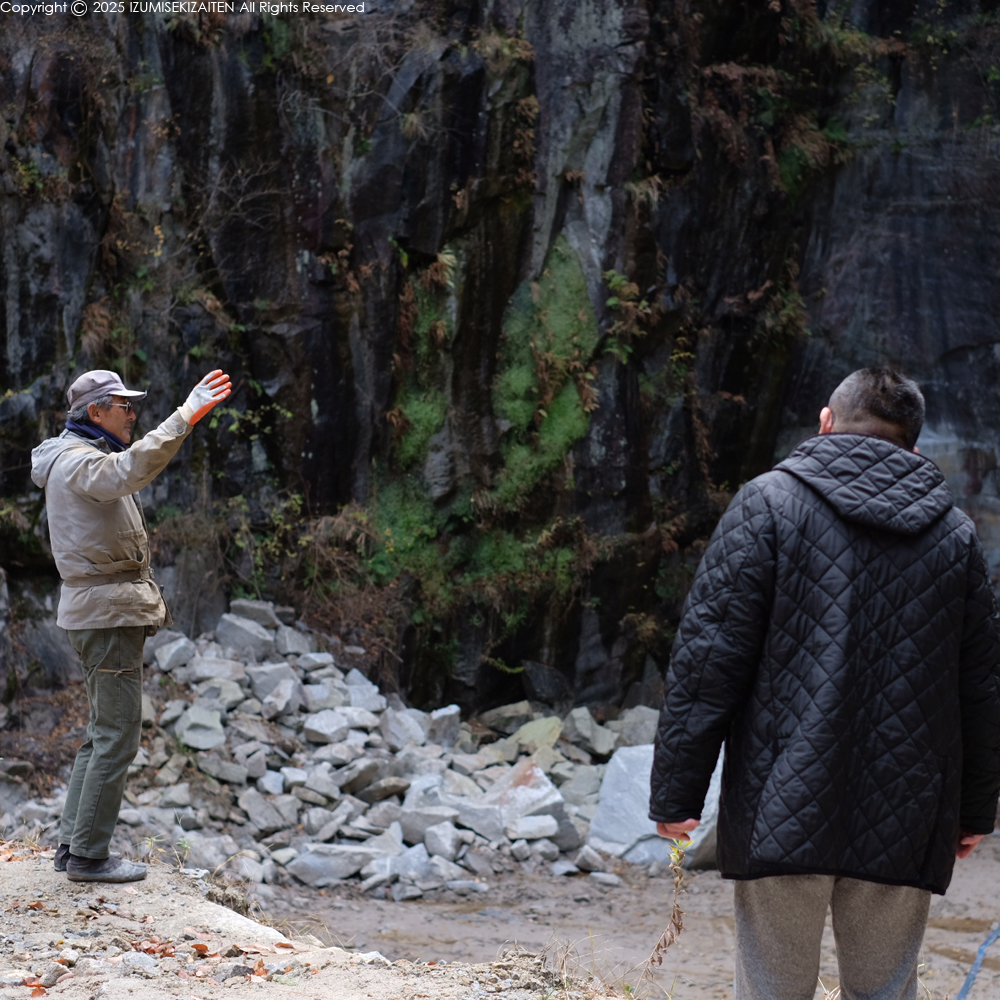先日今年最後の石丁場見学にご案内しました。施主様の墓石は現在小叩き仕上げの準備中。石が何処で採掘され、どうやって加工するか、全てお見せいたしました。