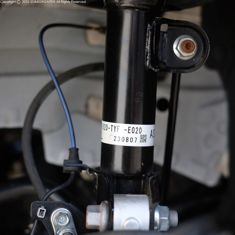 ニュース 車 遅い冬準備 DATE 2026.01.18 ホンダeを冬タイヤへの交換を行いました。毎回足回りのチェックを兼ねて自ら作業をしています。足回りはその車の設計思想が一番出てきます。普段は決して見えませんが、表層のデザインより遙かに重要。 ホンダeのフロントサスペンションはストラット式。ロワアームやバブリング周辺は全てアルミ製。それもホンダe専用です。ホンダeはフィット辺りとサイズは変わりません。全長はフィットより短いくらい。ところが車重は1.5t超え。加えてモーターの出力はほぼ3Lクラスのガソリンエンジン並み。ちなみにステアリングラックは前軸より前にあります。トゥインゴも同様の設計になっていますが、とんでもなく回転半径が小さいのです。 ダンパーはショーワ製。ホンダですからそうなるのでしょう。ダンパーのサイズがちょっとデカイ気がします。車重を考えたら当然なのでしょうか。何だかやたらゴツイ。ちなみにベルランゴ辺りとダンパーサイズ変わらない感じです。 こちらはリヤ周辺。ストラットのサスペンションになっていまして、えらく凝っています。 フロント・リヤ共にサブフレームにサスペンションが取り付けてありますが、マウントはブッシュを介さずダイレクトに固定されています。少量生産のスポーツカーみたいな足回り。当然他車互換なんかありません。 リヤのダンパーとコイルを見てください。本気です。ホンダeの価格設定に関してアレコレ言われていましたが、内容を見ると納得です。売れなかった理由はやはり街乗りというシティコミューターにこの足回りが必要かというところ。無駄という人が大半なのです。私はというと、大賛成。こんな乗り味の良い街乗り車はありません。素晴らしいデザインとメカ。 ホイールナットにテーパーが付いています。これのお陰で社外製ホイールとホイールナットの互換性がありません。良いのか悪いのか。何らかのポリシーがあってホンダはそれを使っているのでしょう。不思議です。こうやってタイヤ交換を四輪行うと、車に対する理解度も上がります。次はスピーカー交換です。 CAT:ニュース | 車 TAG:RECOMMEND | 和泉石材店 | ホンダe 一言石句 TOP prevnext