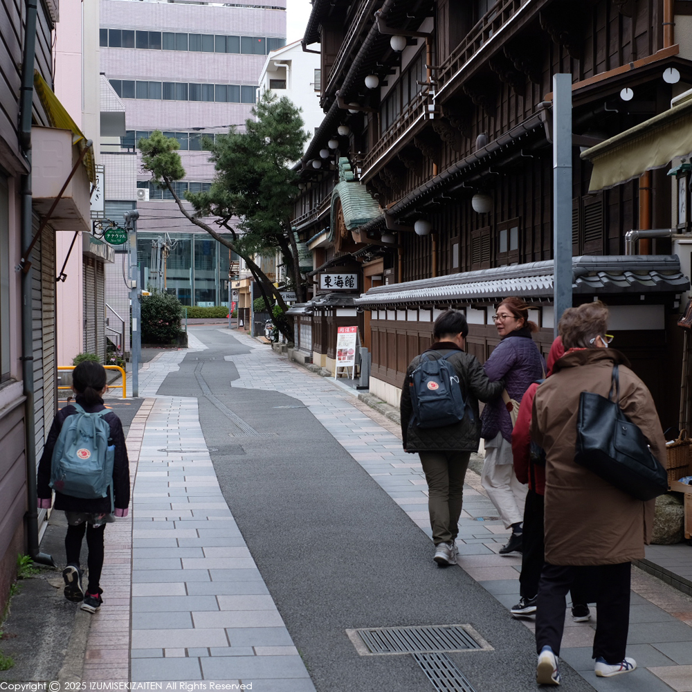 ニュース その他 東海館@伊東 DATE 2025.04.07 ハトヤを後にした一行は、市街地にある東海館へ。かつて旅館だった場所を資料館として公開しています。1928年から70年ほど旅館として運営していたあと、伊東市に寄贈され、現在は文化施設として活用されています。 木造の建物の良さはその柔らかさ。しなりのある空間というか建築というか、廊下を歩いても、部屋に座っても、どこかしらふわりとしたところがあります。これが鉄骨造やRCの建物ではそうはなりません。歴史を重ねた木造建築は復元不可能。出来れば大切に残したいものです。 伊東市出身である木下杢太郎の詩碑の写真がありました。この碑の設計者は谷口吉郎です。谷口さんの図面には石材表の記載があり、この記念碑の細かな石種指示が記されています。ちなみに屏風はイナダ石、議院石(広島の石)など、使い分けています。笠木は議院石磨き、花立の台は浮金石(福島の石)、敷石は大谷石、縁石は伊豆石 六ヶ村 小叩き仕上げと記載されています。仕上げ方法も全て異なり、設計者として圧倒的な石の知識を持っていました。手掛けた記念碑の数々は建築より長く残ると思います。だからここまで執念深く設計されたのだと思うのです。次回は現物調査を兼ねてハトヤへ宿泊。秋に実行したいと思います。 CAT:ニュース | その他 TAG:和泉石材店 | 石材 一言石句 TOP prevnext