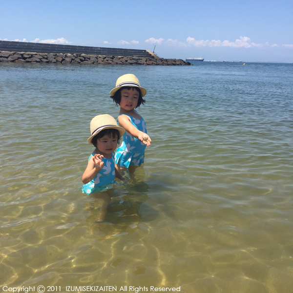 夏休みなので海水浴。私(嫁)がカナヅチのため実のところ子どもと一緒に海に入った事が無く、いつも夫まかせだったのですが、去年のように海水浴無しの夏休みじゃいかんと一大決心したしだいです。前回こどもたちは水着じゃなかったのでちょっと不完全燃焼に終わった為、とりあえず気兼ねなく遊べるように水着で。飲物とタオル1枚でさっと行ってビタビタのまま帰ってこられる気軽な距離。海にわざわざテントを張らずとも休憩が必要になったら濡れた水着のまま家に帰れば良い、まさに海水浴の為の立地です。今回でやはり浮き輪は必須であることを痛感。そして水陸両用の帽子も欲しいところ。さて今年はあと何回行けるでしょうか。
