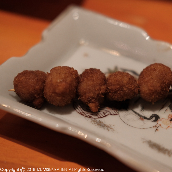 前回「東京コロッケって知ってるか?」と大将。関西人なのにちっとも知らなかったこのメニューがこれです。大阪北部と兵庫県の一部の地域でしか見られることのできない屋台のおまつりメニューなのだそうです。大阪なのに何故名前が東京?という理由は諸説あるみたいなので割愛しますが、その一部地域で愛されているこのメニューは、茹でたジャガイモをつぶしてパチンコ玉に似せた大きさにパン粉を付けて串にいくつか刺して揚げ、超アッサリのウスターソースに浸して食べます。屋台メニューの割に仕込みに時間がかかりそうなめんどくさそうなメニュー。感動している私たちをよそに、このめんどくささに「2度とやらん」と笑。幻のメニューかもしれませんが、とても良い体験をさせてもらいました。
