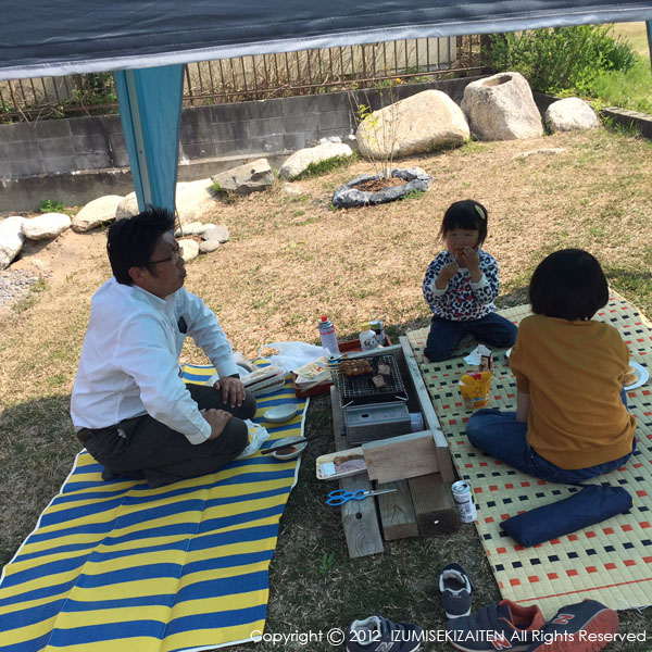 竣工時は茶色だった我が家の庭。もちろん草が生えてくる訳ですが、クローバーやらいろんな種類の草が生えて、さて何がこの生存競争に残るかと見ていたら、隣の駐車場から飛んできた野芝が勝利し庭に敷き詰められました。若干そう仕向けたのですが、いよいよそんな我が家の芝の庭が庭であることの本領を発揮する季節がやってきました。春こそBBQだろ!ということで、先日行って来た養老天命反転地を彷彿させる斜め具合で肉を焼いて食べました。自分の家の庭ですし、誰にも会わないし、こんな陽気だし、こんな今だし、どんなに斜めだろうが急に思いついて買ってきた特売の肉が最高に美味いのです。