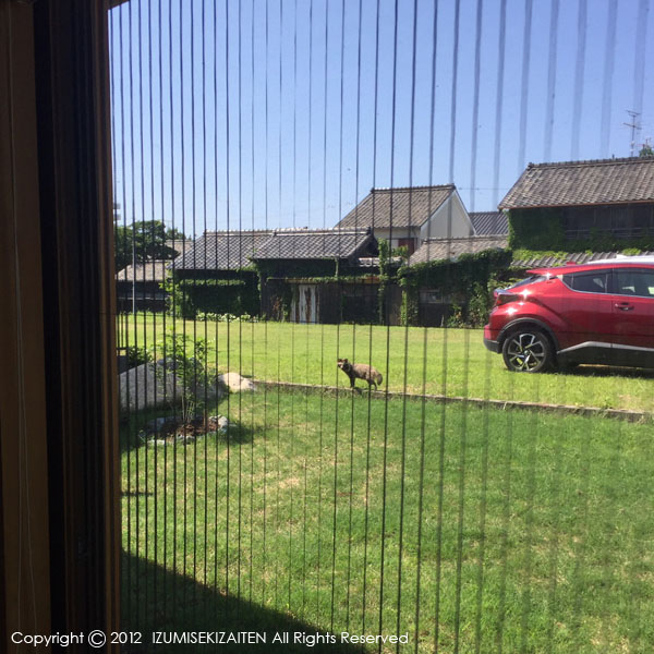新居での生活が今月で1年経ちました。1年暮らしながら、あれは幻だったのかも?と思っていた事が確証に変わった出来事がありました。去年の夏休みの帰省からこちらに戻ったその時に、私は見ました、タヌキが家の敷地を横切っていたのを!しかしそれは私しか見て居らず、そんな訳ない見間違いだと思って1年過ごした、6月のある日です。近所の飼い猫が我が家の隣で大集合していたのをこどもたちとじいちゃんばあちゃんで「いったい何匹いるんだ?」数えていました。たくさんいるなあワハハハ〜と笑っている所に私が見ていると、あきらかに違う動物が1匹、紛れ込んでいます!タヌキです。おそらくあの時のあいつなのです!そこから注意深く、我が家の広縁の大窓から見ていると、隣の駐車場を挟んだかつて旅館だった廃屋に、どうやら住み処を構えている事を発見しました!意外なお隣さんです。もう我が家は歓喜の渦!今年1番の大ニュースになりました。夕暮れ時と朝方、これまでおそらく猫の散歩だと思って目もくれなかった生き物のどれかはタヌキだったのでした。それからわが家の大窓はもうタヌキ劇場です。みんなことある毎に庭を見て、発見するとみんなに報せ、静かに家の中から驚かせない距離を持ってその姿に癒されるのでした。