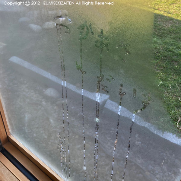 我が家の大窓のガラスは、冬にはいつも美しいのです。なぜなら寒い朝にはガンガンに結露して、朝からみんなで毎朝窓ふき大会だからです。まだ本格的な結露まではいってませんが、寒すぎる日には床に水溜まりができます。無垢材なので、起床後大慌てで拭きたくります。おかげで目が覚め、窓を上から下、下から上へとうまいこと屈伸運動にもなっているので、身体にはよさげです(こじつけ)。ただ、曇ったガラスはこどもたちにとってはキャンバスでしかありません。とにかく床に垂れるのを避けたいのに、なんぞ描かれると字の先から垂れて垂れて水溜まりを作るので、ある意味結露はこどもとの戦いでもあります。油断も隙もありゃしません。ラブレターは嬉しいのですけど、垂れた字は若干ホラーでかなり重苦しい感じになります。でもこどもたちは大きなキャンバスにダイナミックに書けるので毎回うれしそうです。