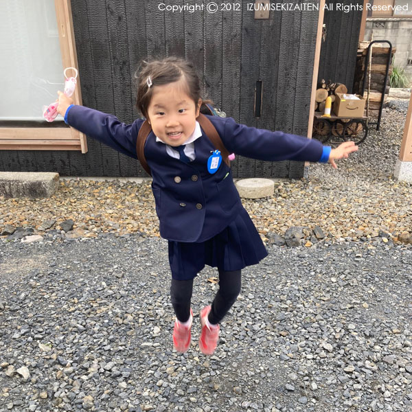 長女が幼稚園に入園した日から、登園時、登校時のいってらっしゃいの1枚を必ず毎日玄関で撮っています。古民家の時から現在まで途中から1日2枚に増え、ダラダラ用意して朝からカミナリを落とした朝も毎日です。なるべくわざとらしくならないように自然な1枚をサッと撮りますが、大きくなる毎に、撮られたい絵を表現するようになりました。長女はすぐ面白いネタを仕込んできます。次女の今のブームはジャンプです。飛んでばっかりの朝です。サッと撮るがモットーの朝の1枚が、すっかり次女の満足いくまで撮らされています。めちゃくちゃ元気な名作が撮れるので毎日元気をもらっています。