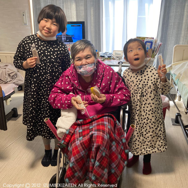 正月3が日が過ぎたら兵庫に帰省するのが恒例です。誰にも会わなかった去年の正月とは違い、今年はみんなに会えました。母は去年の秋に父と同じ施設に移り、父と同じ部屋で過ごしています。ここ数年、だれかが入院しているとか、医療を受けられる有無などの介護の具合で父と母がバラバラの場所で過ごしていましたが、今年は久しぶりに両親の揃うお正月です。去年の父は、皆にいろいろ覚悟をさせたのですが、今は少し落ち着いて頑張って生きています。いつもなら常滑を出発してまずは山小屋へ行きますが、今回は両親の元へ直行しました。その日の父は、この状態になってから一番私たちへ反応してくれたんじゃないかと思うくらい調子がよさそうでした。母もとても良い顔で迎えてくれました。母はパーキンソンの症状が徐々に進み、ますます動作と声と、あと思考も小さく狭くなってきていますが、一定の時間でやってくる苦しいのと痛いのに毎日耐えながらも前を向いて本当によく頑張っていると思います。側で文句言わず支えてくれている姉たち家族もすばらしいです。改めて、新しくそういうことを思い直した年の始まりです。