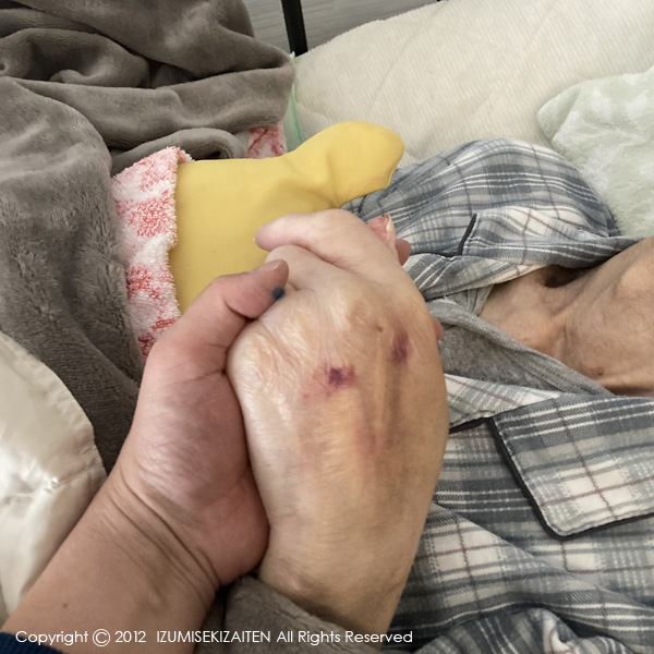 1月の最後の月曜日に、兵庫に住む姉から「来れるなら来て」という連絡がありました。去年末から食事ができない状態になって入退院を繰り返しこの半年はこちらへの反応も薄くなった状態でした。姉たちが頑張ってくれて少しでも長く生きるように尽力してくれましたが父がいよいよ危ないということになり、火曜日にとりあえず私(嫁)単身で兵庫の実家へ向かいました。どうか着くまで待って!と祈りながら到着すると、父は頑張ってくれていました。それでももう最後の時間であることはわかっていて、ここにいる父との時間で看護師さんと一緒に父の体を拭いたり、手を握って父の体温を感じ、心臓の音を聞き、父の呼吸を見て過ごせました。鉄の心臓の力を見せつけてくれて木曜日に父は静かに息をするのをやめてしまいました。コロナ禍のこの状況下に看取れてあげられただなんて本当に奇跡でした。脳梗塞を患って15年の間に徐々に体は蝕まれていきましたが、最後まで家族への愛情を忘れず、よく生き抜いてくれたなと思います。この一言石句でも時々父の状況を記したこともあって、気にかけてくださった方もおられます。この場を借りてお礼申し上げます。