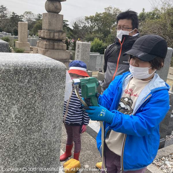 今年の春休みに夫が絶対やると決めていたことがあります。それは私(嫁)の実家のお墓のクリーニングをしてくれることです。夫とこどもたちは父がこの世を去った時にこちらに来れなかったこともあって、おじいちゃんが入る前に綺麗にしよう!と、機材を持ち込んで本気のクリーニングの施工です。弊社はそのプロですが、ここで初めてお客さまの気持ちを味わう機会が訪れました。こどもたちにとってはもちろん初めての体験です。最初からやる気満々で挑んでくれました。1番近い身内のお墓ということもあり失敗してもいいから一生懸命することが最大の目的。誰が言ったでも無くこどもたちは、おじいちゃん見てくれているかな?とつぶやきながら一生懸命ピカピカにしてくれました。私にとっては馴染み深い実家のお墓。生まれ変わったようになりました。夫の手際良い指導の下、みんなで実に心地よい達成感を得られました。