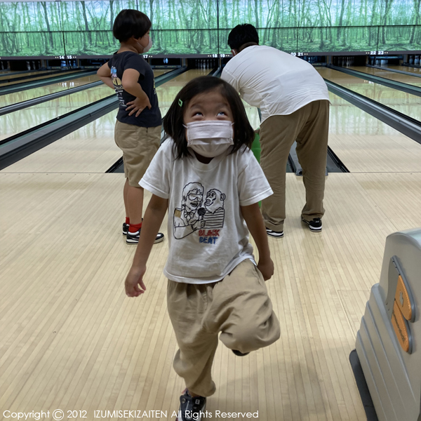 何を隠そうボーリングなるスポーツをこの夏始めて興じた我が家。超単純で家族みんなで出来るってのに私たちこれまで何やっていたんだろう!こどもたちもボーリングという競技はテレビゲームの中でしらないという始末。まったくもっていけません。ということで実家の至近距離にちょうどあったので行ってきました。私たちも独身時代ぶりです。専用シューズに履き替え、ボーリングの球がこんなに重いということを初めて経験する子供達。長女はもうノリノリです。