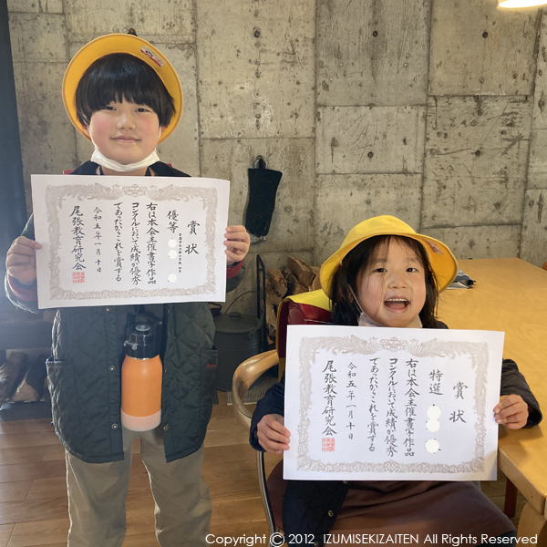 3学期の始業式から、そろそろ帰って来る時間に玄関でごそごそゴニョゴニョ音がします。「ん?これは2人なんか企ててるな」と思った矢先に「サプラーイズ!」と言って2人とも賞状を持っているのでした。何かと思えば3学期の始業式名物「書写コンクール選出者の発表」があり、なんと2人とも選ばれたとのこと!しかも次女に至っては(学校で)1番の特選です。そういえば長女が1年生の時も全く同じ特選で選ばれました。長女は1年、2年と続けて選ばれ、前回3年生の時は選ばれなくて悔しい思いをしたことは素晴らしいことでした。それがバネになったのか、今年は選ばれて相当嬉しかったようです。「文字は人に読まれる為に書くから、見てくれる人へ敬意を持って丁寧に書きなさい」とさんざっぱら言われているのを小さな頃から横で聞いてる次女は、文字を書き始めるようになってから、割と丁寧に書くなあとは思っていましたが、まさか選ばれるとは思っていなかったのでびっくりしました。まさか姉妹揃っていただくとは大変名誉なことです。これは本当にご指導してくださっているお習字の先生(御年96歳!!)のおかげです。今後の2人にとって励みになると思います。ありがとうございました